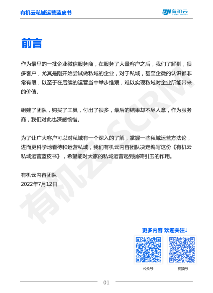 《2023有机云私域运营蓝皮书》是由有机云内容团队编写的私域运营指南,本指南由浅入深,从基础的企微注册、养号,再到进阶的获客、运营、转化,对私域运营的全阶段都给出了较系统的落地指南建议,是企业运营私域不可多得的启蒙资料,内容速递: